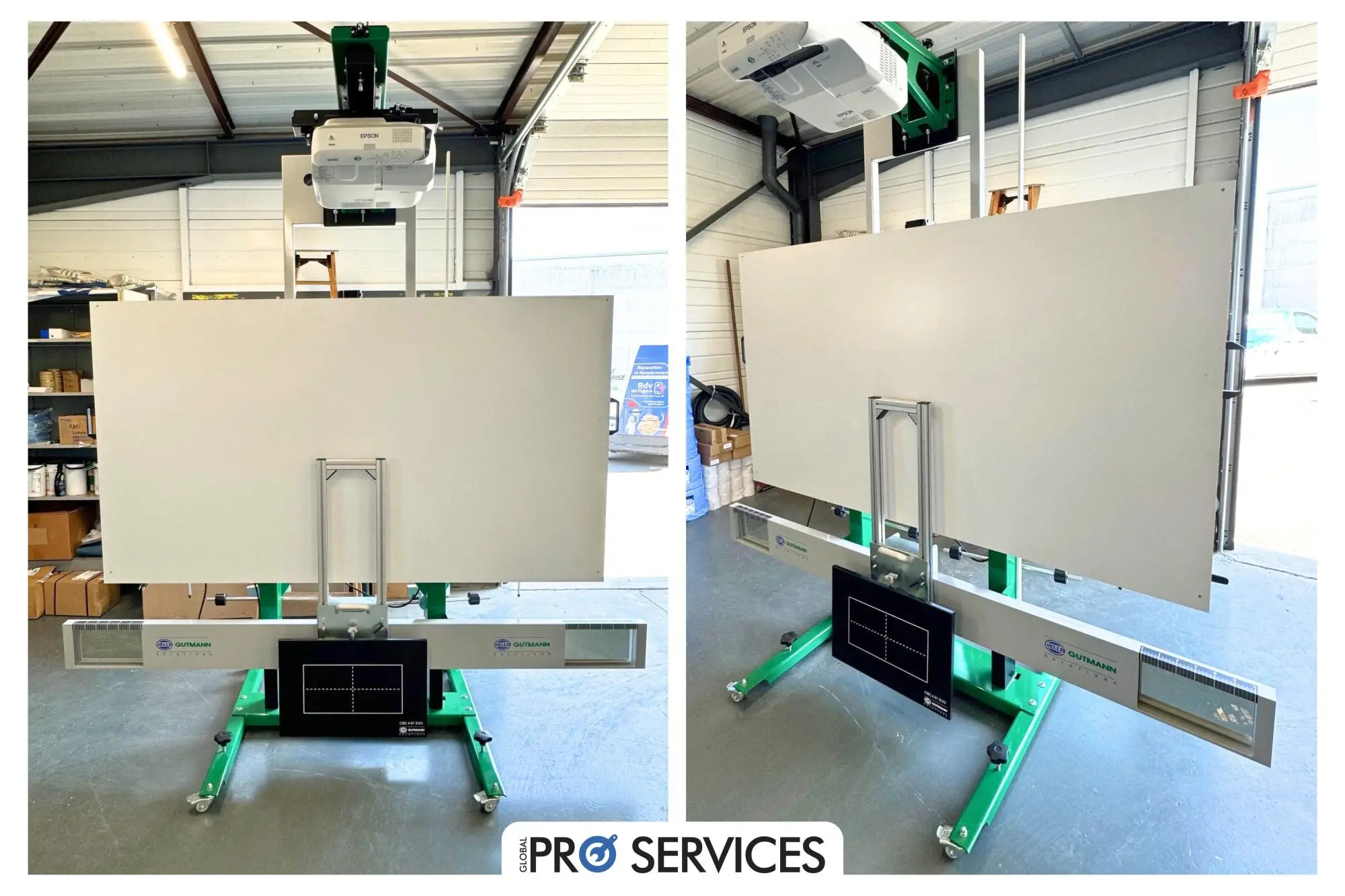 ✅ Le système digital est équipé d’un projecteur HD relié à application CSC Tool via l’Apple TV intégré qui permet de projeter rapidement les tableaux de calibrage spécifique à n’importe quel constructeur automobile.