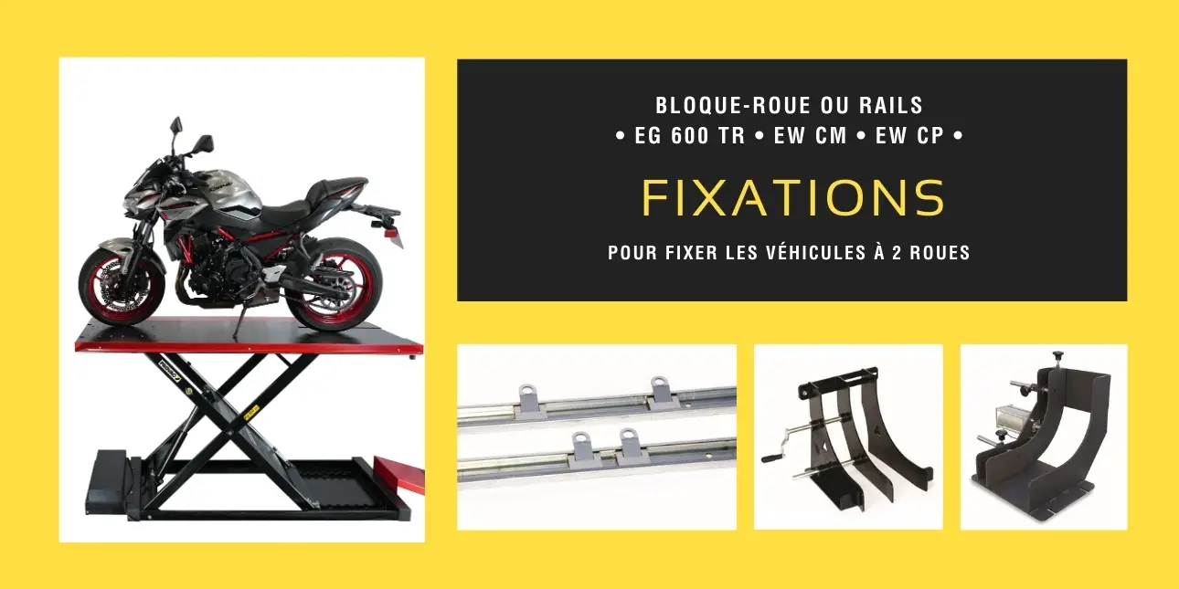 Cette nouvelle plateforme de levage est dotée de nombreuses options supplémentaires pour améliorer l'efficacité des opérations de maintenance et notamment la fixation. Parmi ces options figurent des rails avec crochets (réf. EG600TR) pour sangler les motos en toute sécurité, un bloque roue à fonctionnement mécanique (réf : EW CM) ou à fonctionnement pneumatique (réf : EW CP) Mais aussi une rampe large de chargement (réf. EG6007L) pour accueillir des véhicules plus imposants. Ces accessoires et bien d'autres sont disponibles pour rendre chaque tâche d'entretien plus facile et plus rapide.