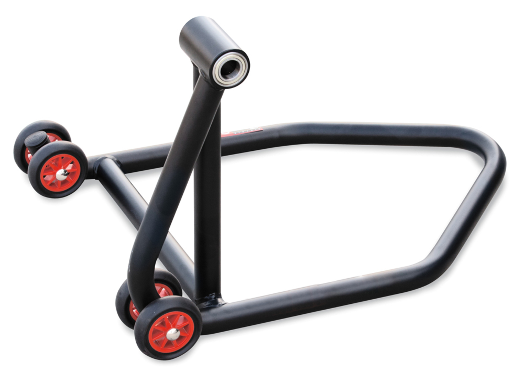 Béquille pour motos avec fourche mono bras gauche sans pivot.