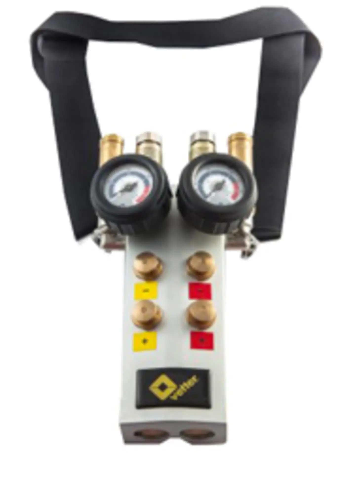 Ce boîtier de commande pour 2 coussins de levage, en aluminium léger avec un poids de 2,8 kg, gère efficacement une pression de gonflage maximale de 8 bar. Il est équipé d'une admission taraudée de 1/4", offrant un contrôle précis et fiable pour des opérations de levage en toute simplicité.