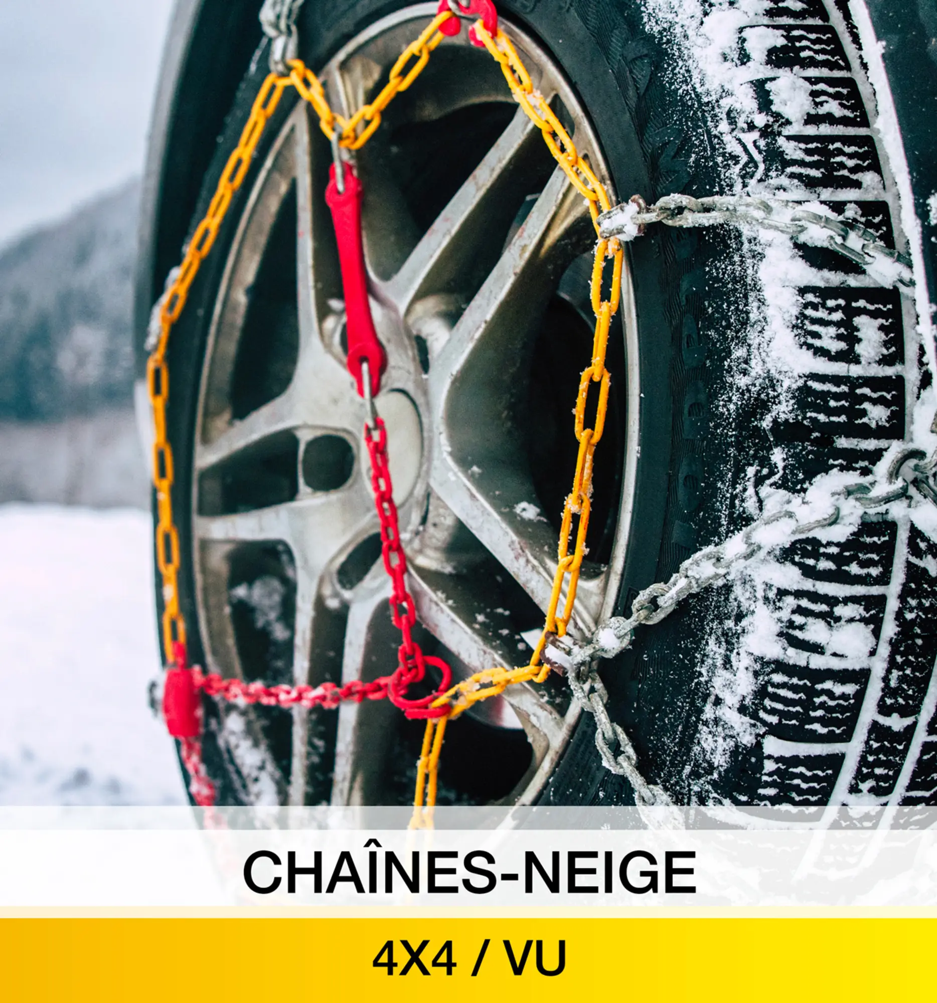II est conseillé de placer les chaînes-neige sur les 4 roues des véhicules 4x4.