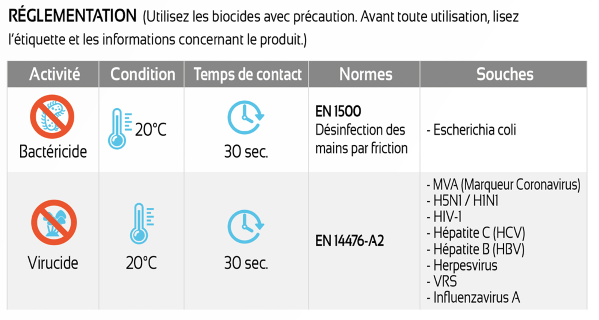 Ce gel est non parfumé, offrant ainsi un confort d'utilisation optimal, tout en respectant la peau grâce à son pH neutre (pH7). Sa formule est également virucide, testée sur le MVA, un marqueur du coronavirus, pour une efficacité maximale contre les virus.