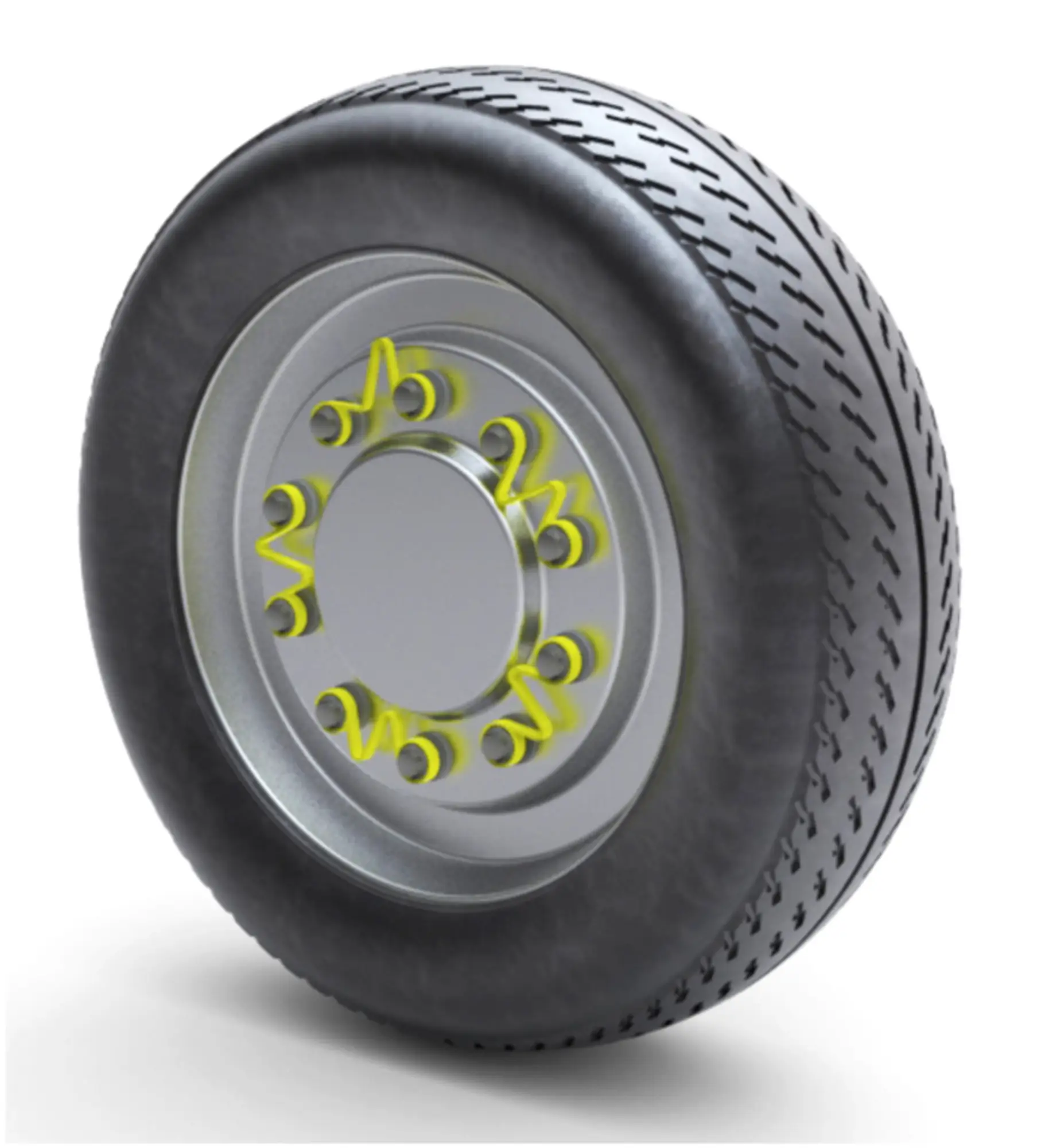 > Détection d'une surchauffe au niveau de la roue (frein à disque ou à tambour, roulement, moyeux, transmission) par la déformation de l'indicateur.