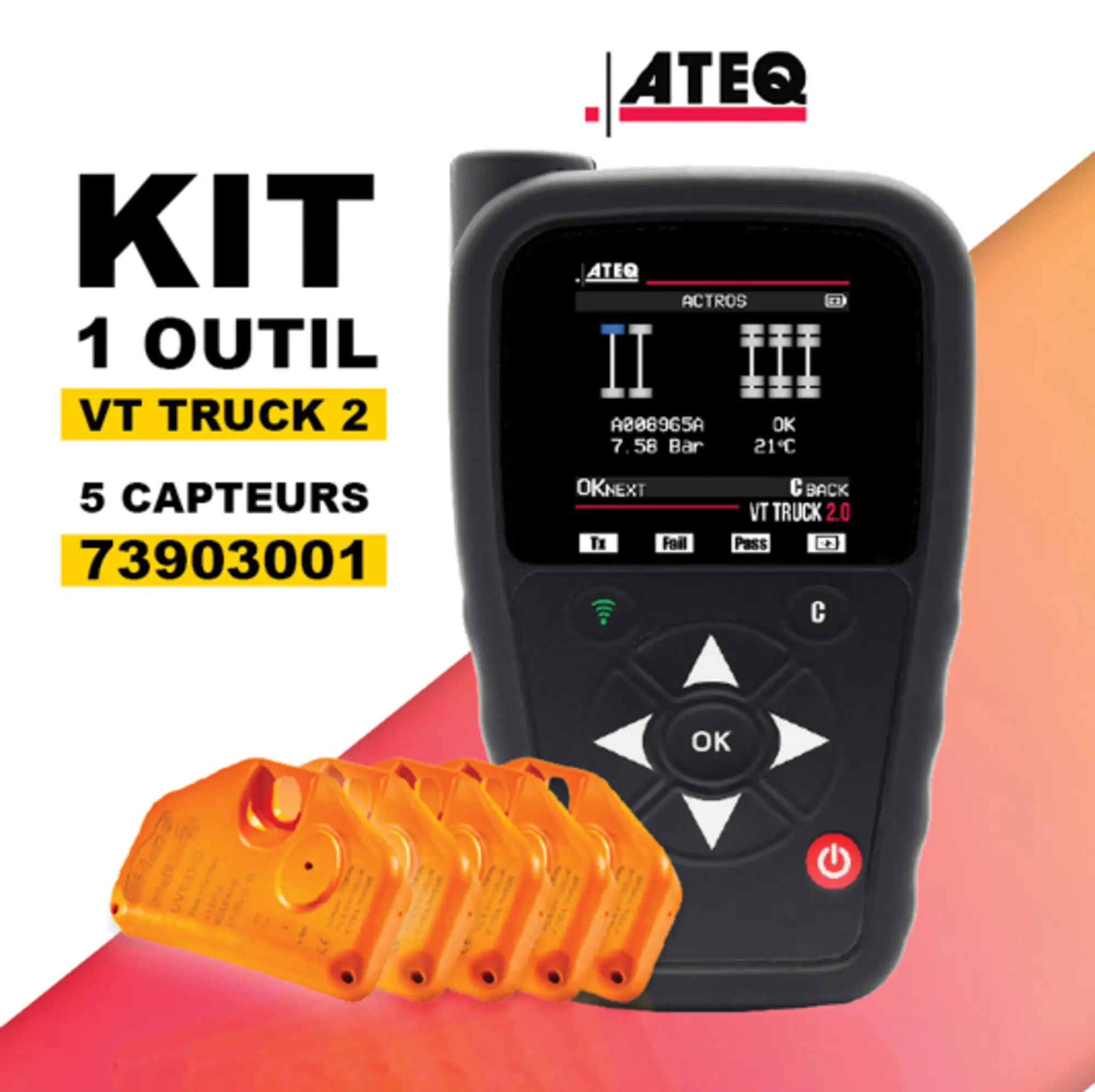 OFFRE START TPMS Kit composé d’un outil VT TRUCK 2 ATEQ et de 5 capteurs 73903001 pour PL.