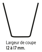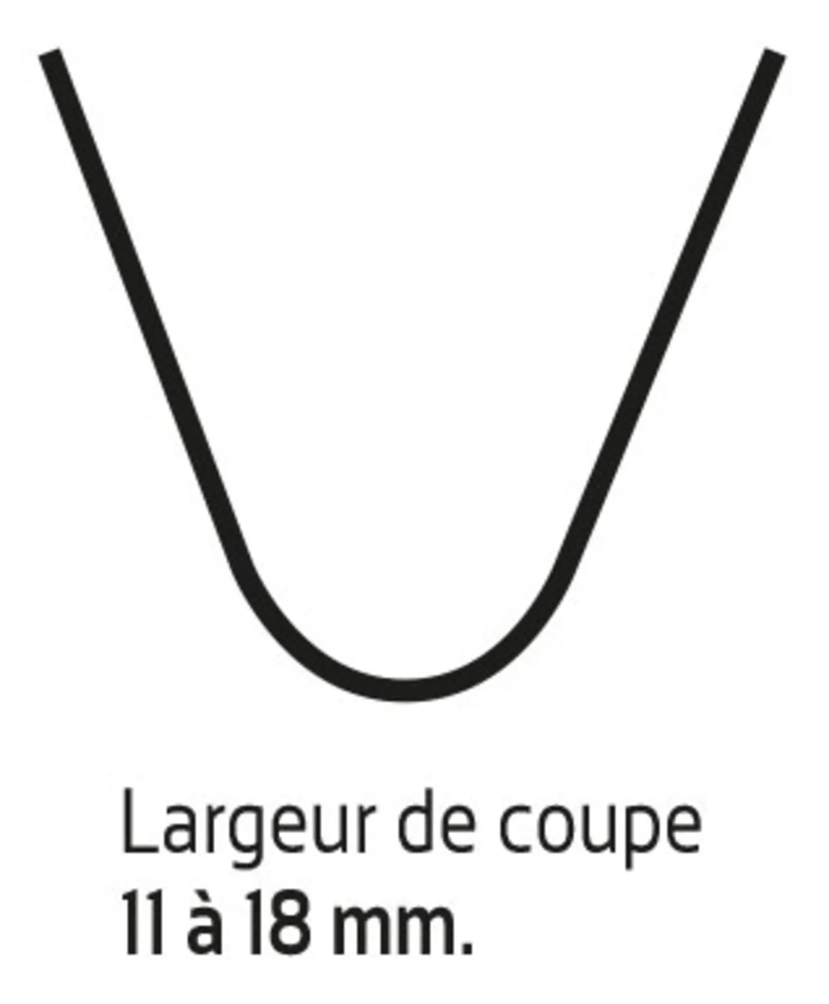 Largeur de coupe 11 à 18mm. Profil rond. Affûtage double face pour éviter la plongée dans la gomme et assurer un