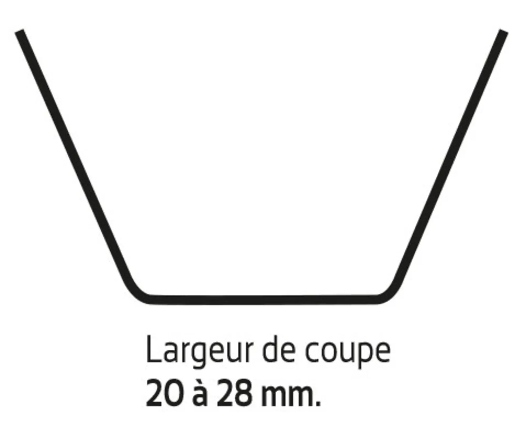 Largeur de coupe 20 à 28mm. Profil carré. Affûtage double face pour éviter la plongée dans la gomme et assurer un