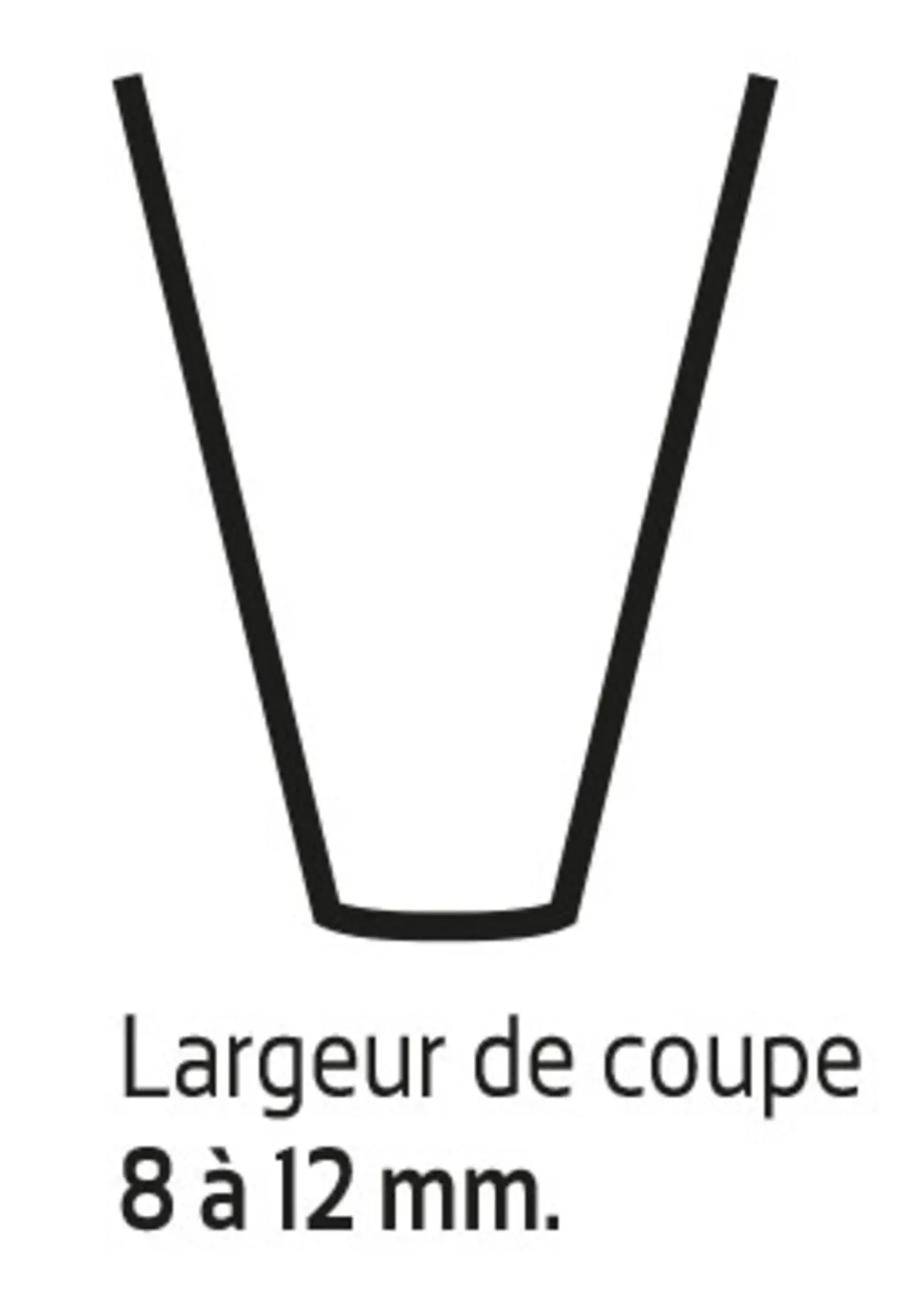 Largeur de coupe 8 à 12mm. Profil carré. Affûtage double face pour éviter la plongée dans la gomme et assurer un