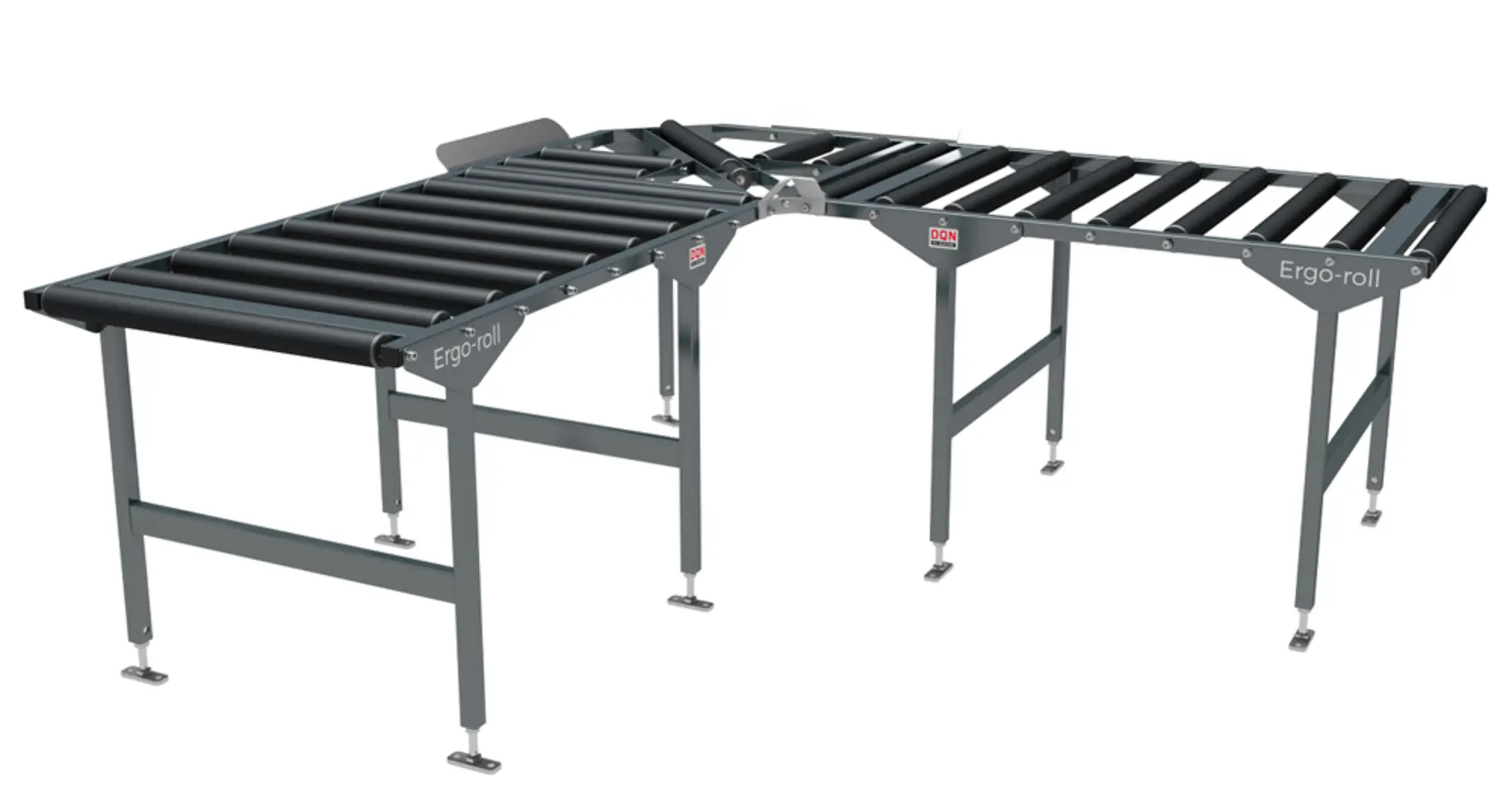 Le cadre à rouleaux d'angle de la marque DU QUESNE (DQN) est la solution idéale si votre poste de travail ne permet pas de travailler sur une seule ligne. Il permet aux roues de faire facilement un virage à 90°.