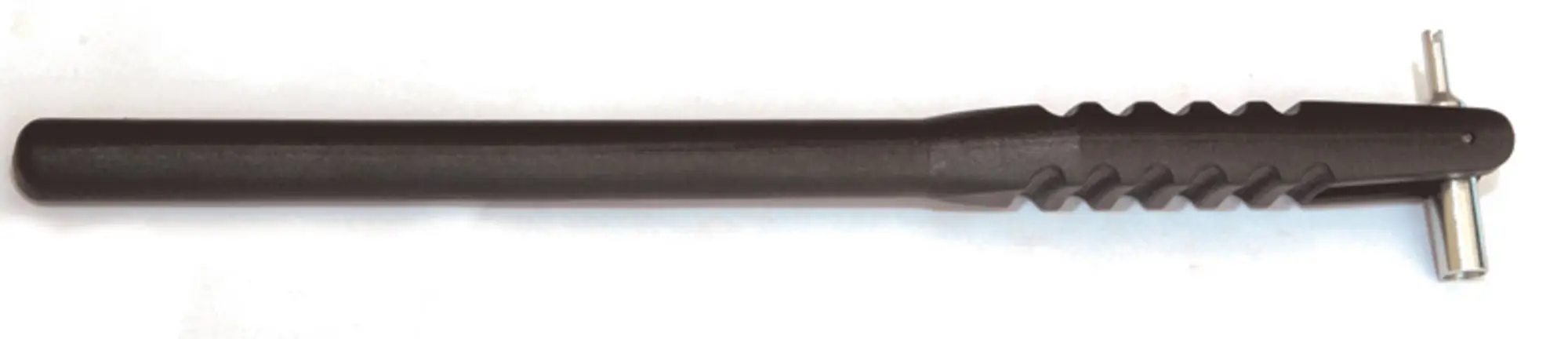 Levier en plastique HAUTE RESISTANCE pour la mise en place des valves caoutchoutées. N'abîmez plus les roues en alu ! Double fonction : Vissage/dévissage de l'intérieur de la valve et mise en place de la valve.