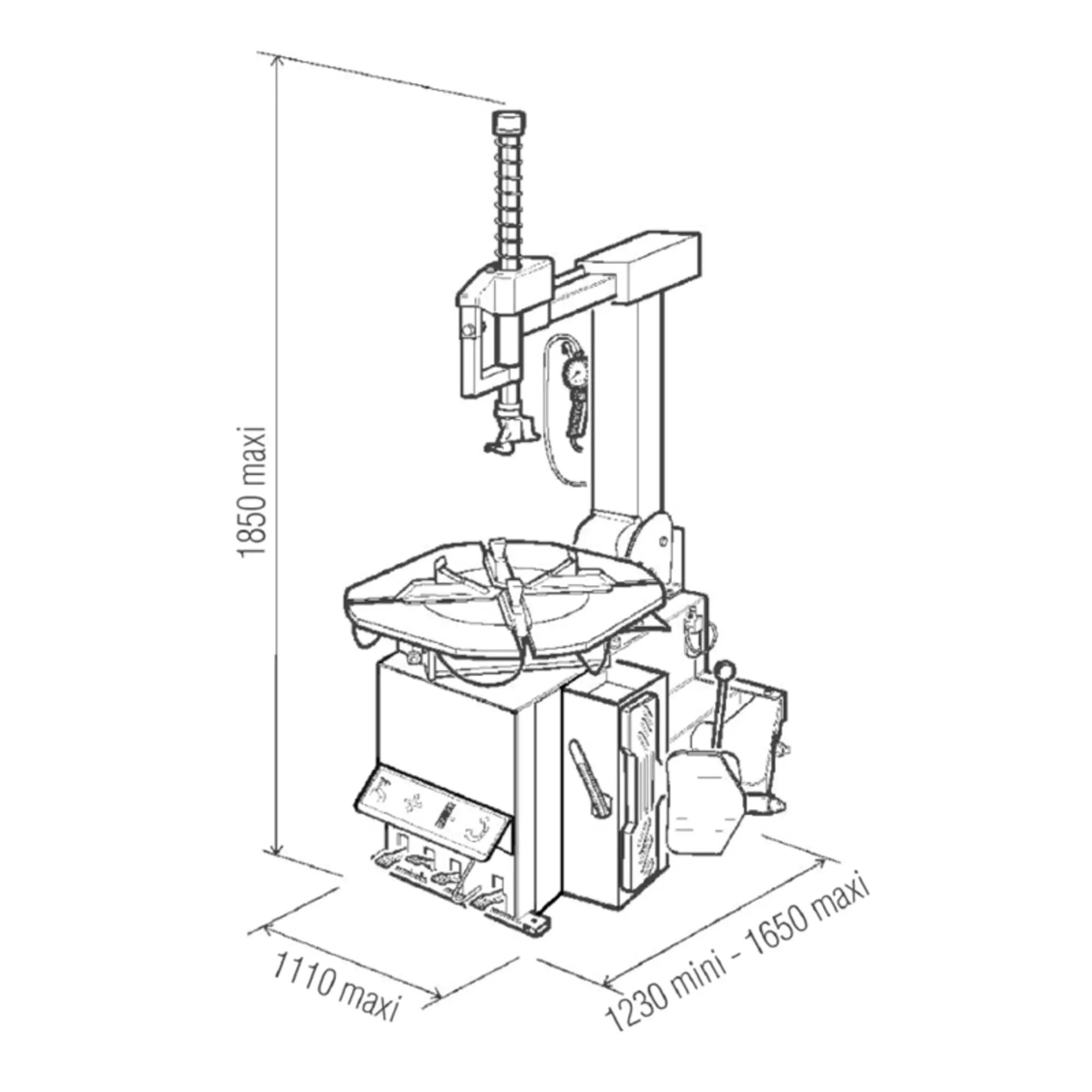 - Plateau carré, pour détalonner les pneus de grand diamètre, et rectifié sur les 2 faces pour un coulissement parfait des mors ! Hauteur par rapport au sol : 680mm