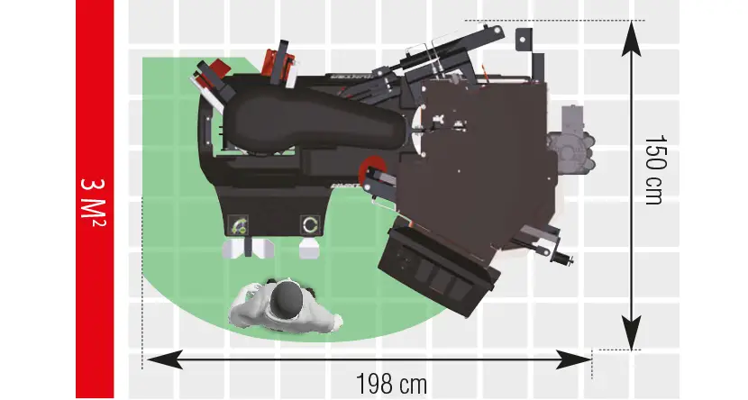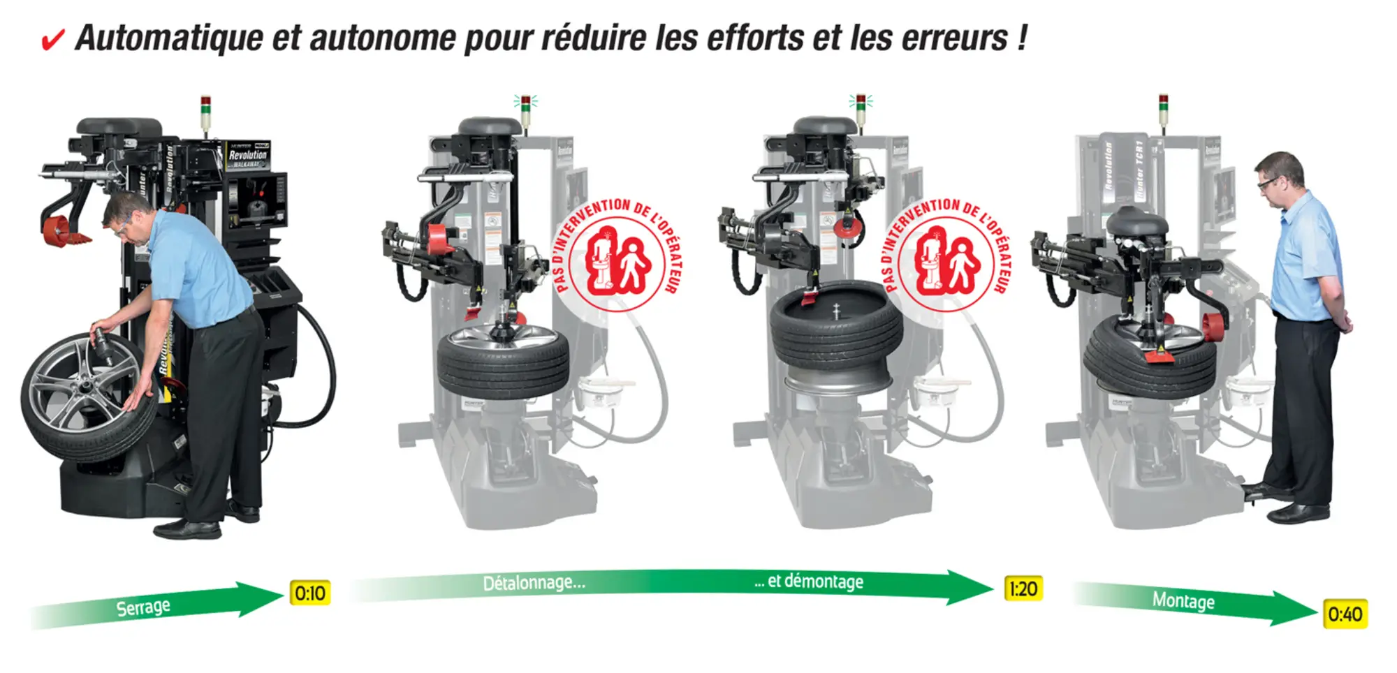 Conçu pour limiter les déplacements de l’opérateur, le monte/démonte-pneus Revolution optimise l’ergonomie de travail. Avec seulement 3 m² d’encombrement, il s’intègre facilement dans l’atelier tout en maximisant l’efficacité.