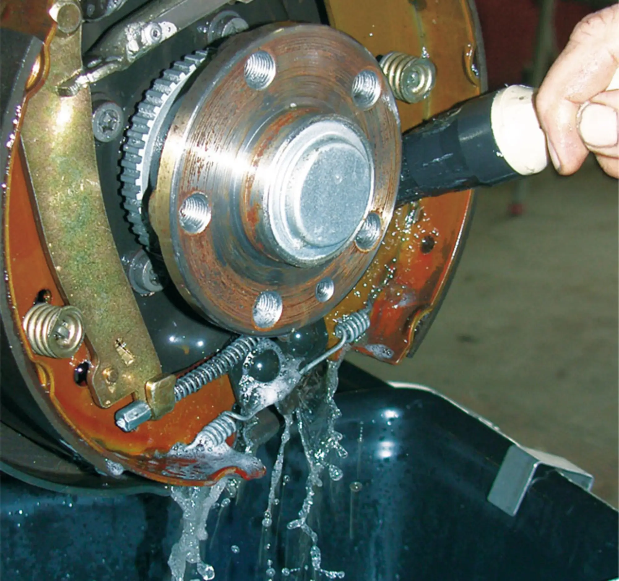 Ce nettoyeur avec pompe pneumatique à débit réglable est conçu pour un usage intensif. Alimenté par air comprimé (6 bar), il assure un nettoyage en profondeur des étriers, tambours, disques et autres composants de freinage, sans projection d’aérosols ni utilisation de solvants inflammables.