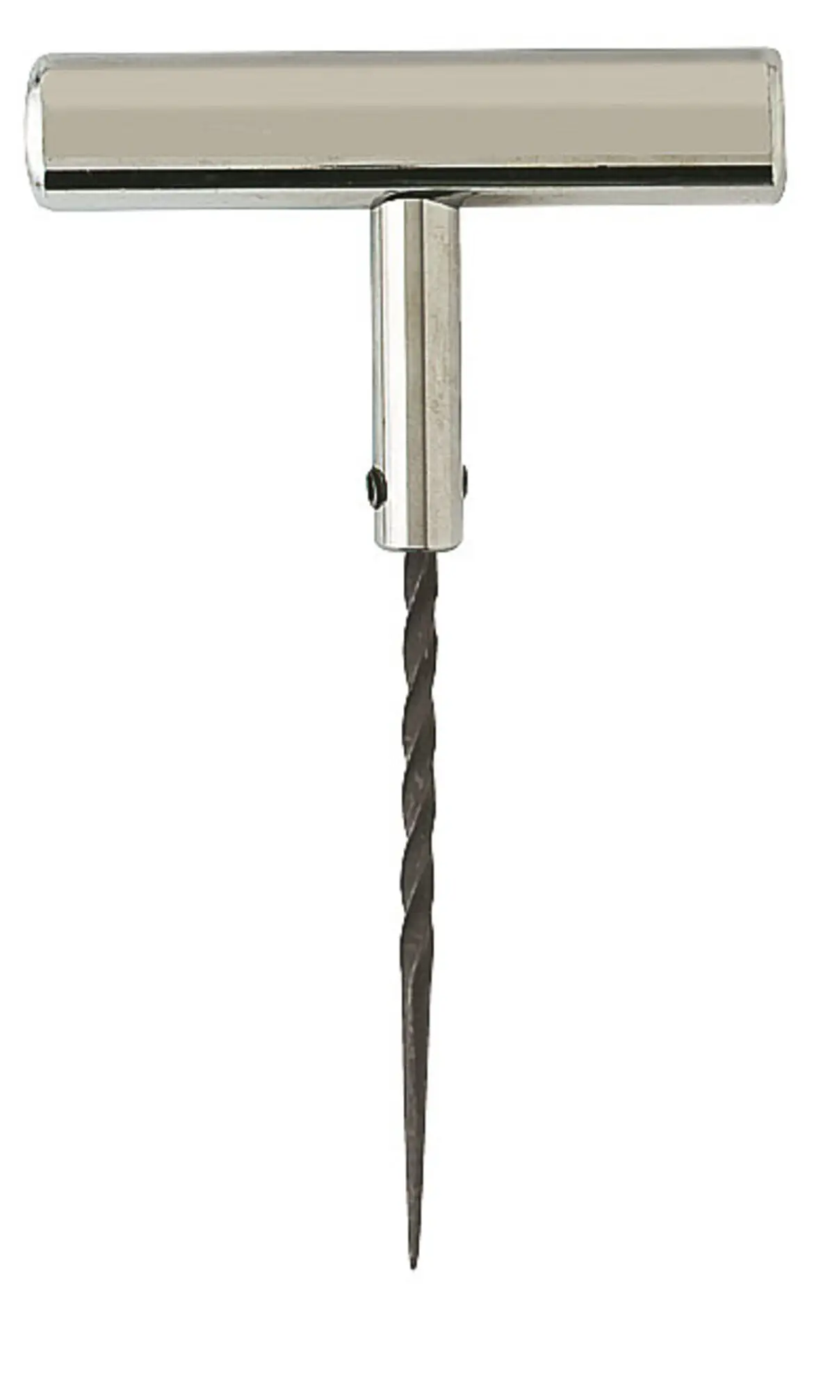 Outil de pose pour inspecter et lubrifier la perforation du pneu (L:105mm). - Une clé Allen de 3 mm est nécessaire pour remplacer les aiguilles. - Les nouvelle aiguilles se montent sur les anciens outils 15065, 15066 et 15069P.