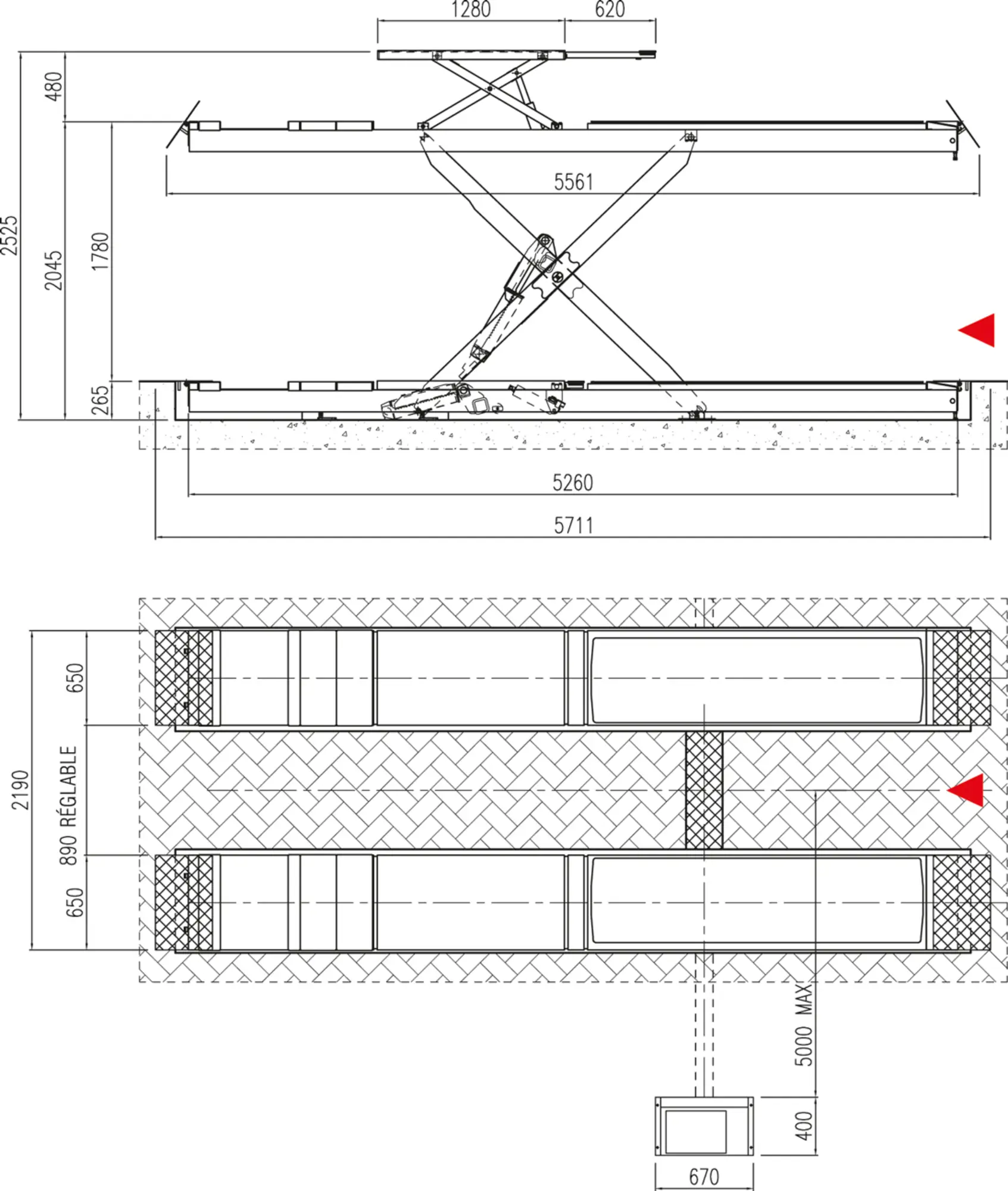 > Fabrication robuste : l'élévateur pèse 2 610 kg.
