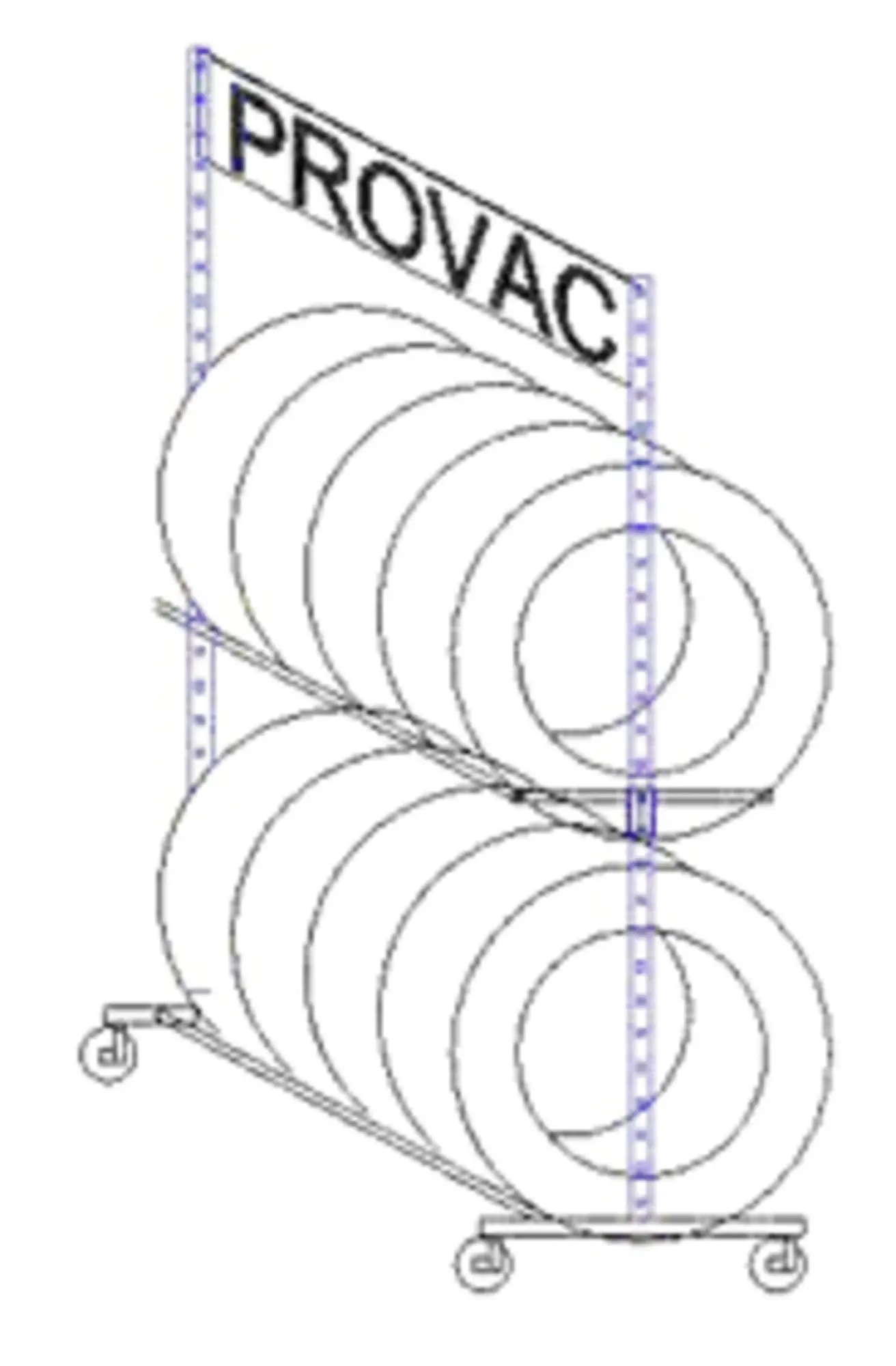 PRÉSENTOIR À PNEUS MOBILE (sans marquage)> La solution 2 en 1 : manutention des pneus (du stock jusqu’au poste de montage) et présentation des pneu