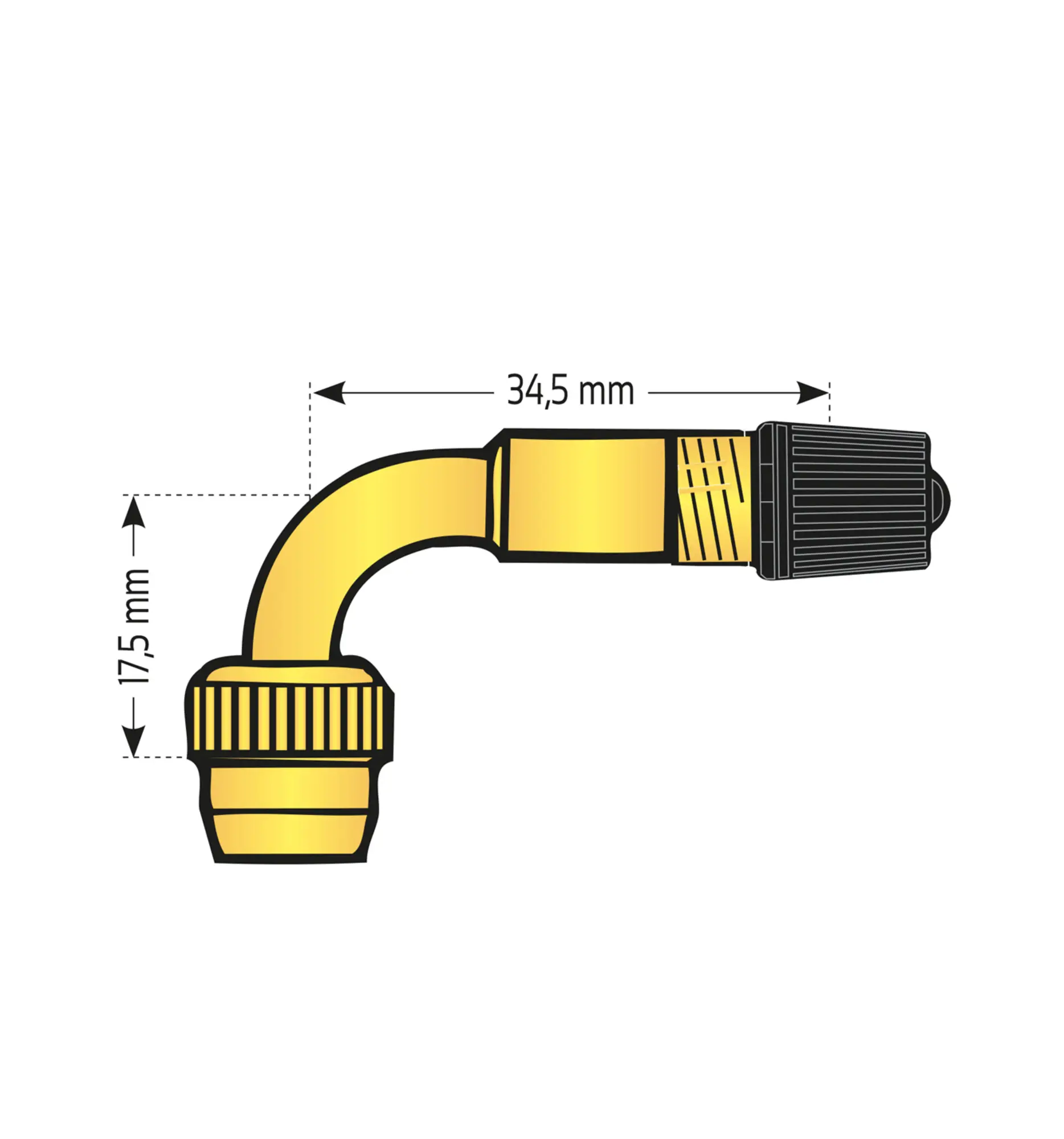 Rallonge de valve PL rigide métal, coudé 90°.# - Couple de serrage de l'écrou tournant : 0,3 à 0,5 Nm.