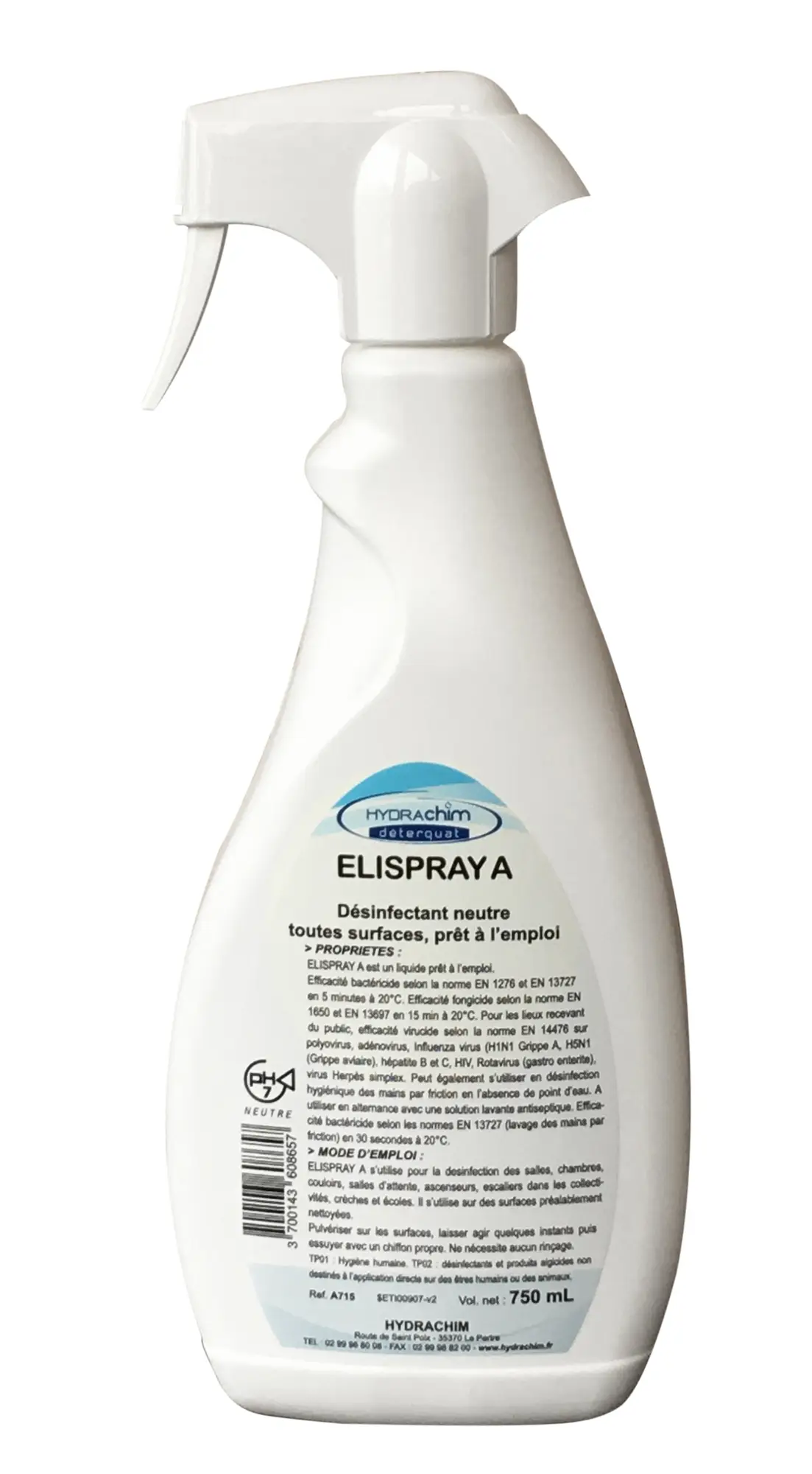 Le spray désinfectant 750 ml est une solution prête à l'emploi, spécialement conçue pour la désinfection des surfaces. Ce produit est efficace contre les bactéries, les champignons et les virus, garantissant une hygiène irréprochable sans nécessiter de rinçage.