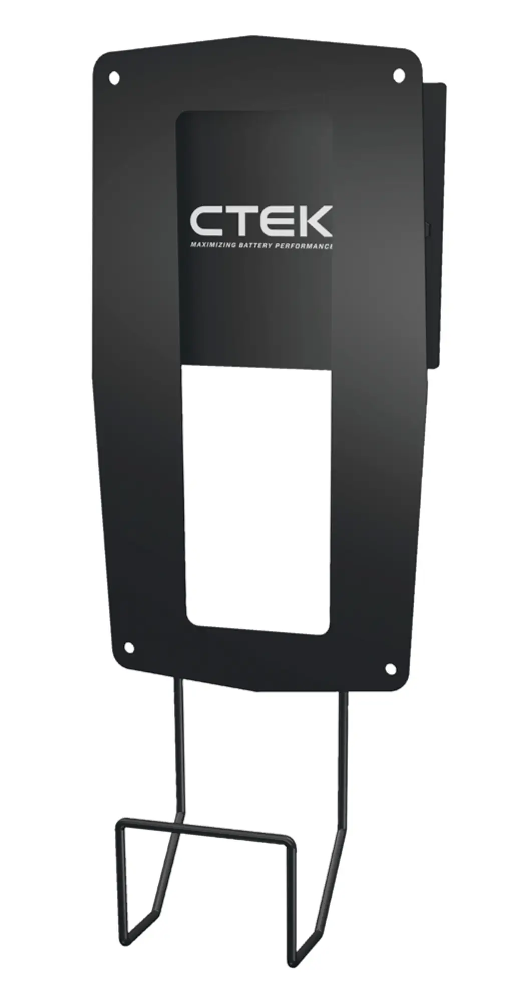 La plaque d'appui du WALL HANGER 300 se visse directement sur l'arrière du chargeur ; il est également équipé d'un crochet permettant de ranger des câbles en toute sécurité. Le dispositif possède des pieds en caoutchouc résistants de manière à ce que vous puissiez poser votre chargeur sur le pare-brise ou la carrosserie, sans rayer la peinture du véhicule.