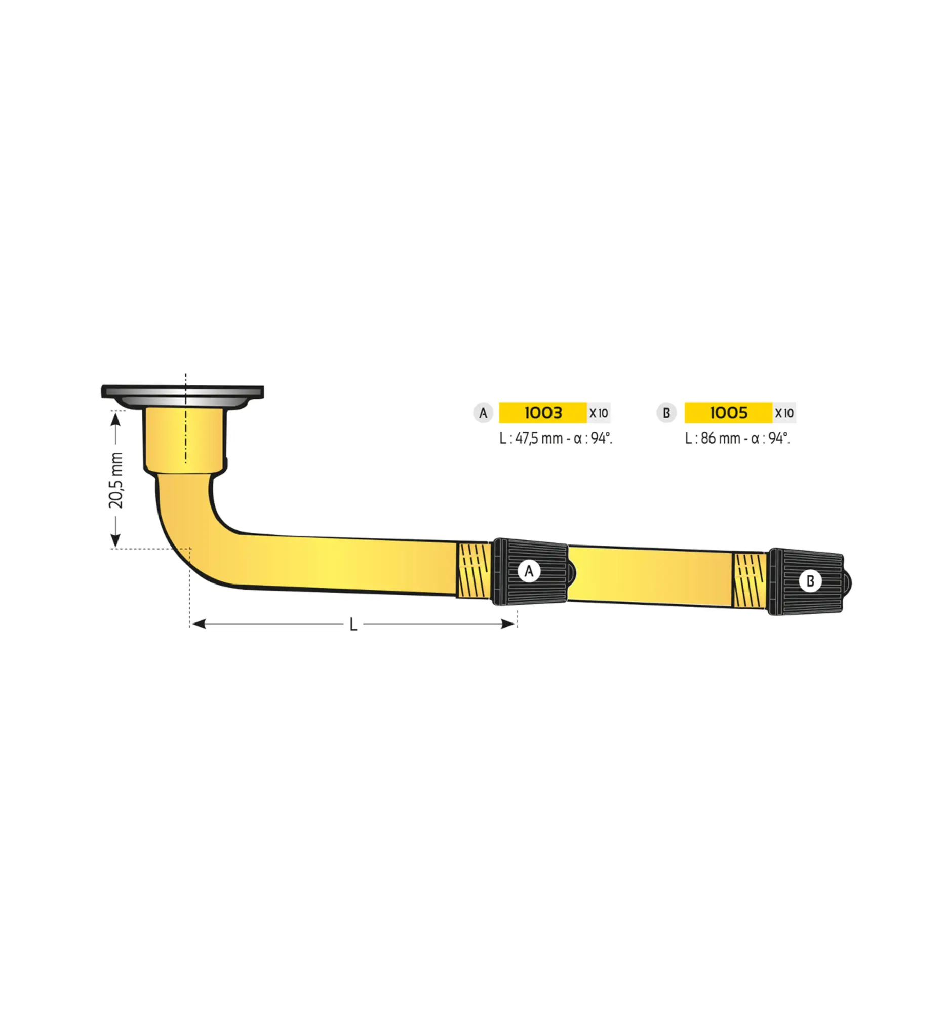 Rallonge rigide coude metal (90 degres)