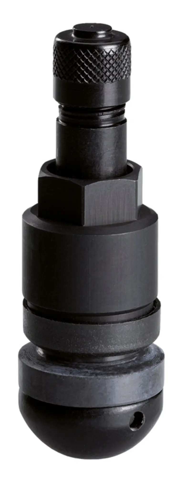 Valve métallique pour pneus sans chambre. Valve en aluminium anodisé NOIR.