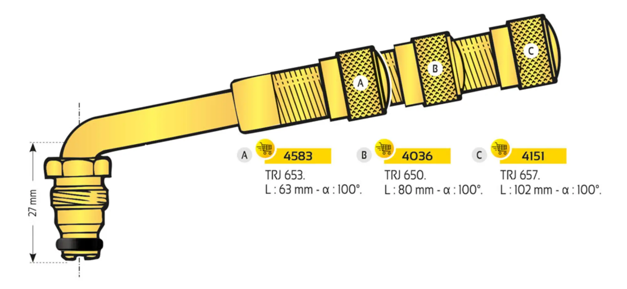 TRJ 650 - L : 80MM - Angle : 100° - Couple de serrage : 8 à 10 Nm.